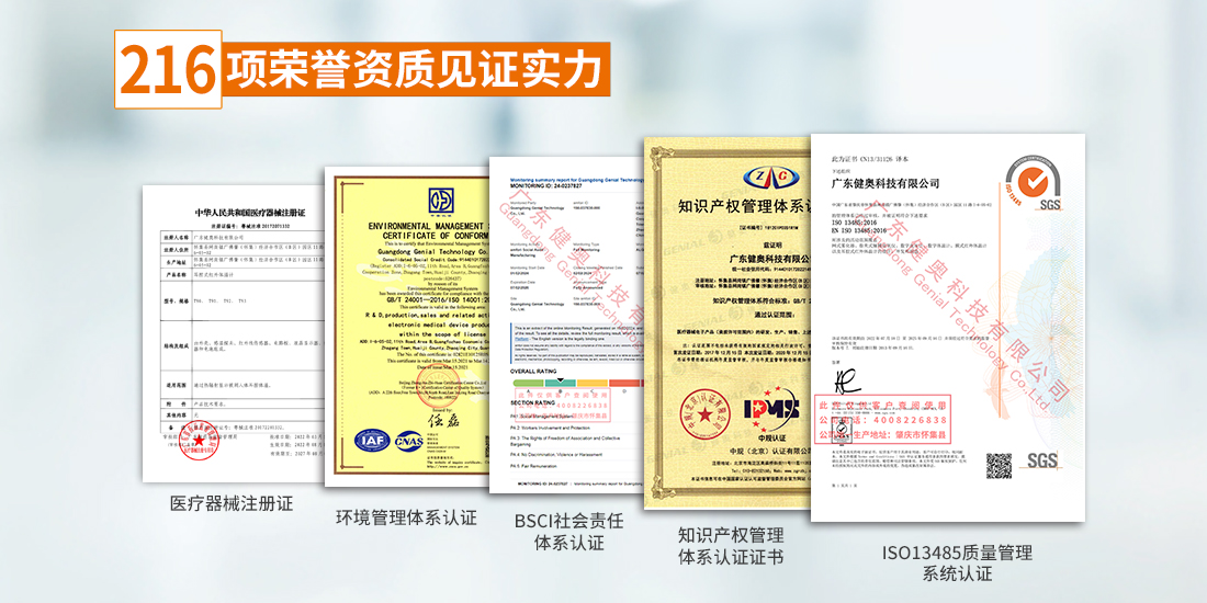 不斷研發創新,企業已經獲得216項榮譽資質,并且通過了ISO 13485 、ISO 45001、 ISO 14001、GB/T 29490知識產權管理體系認證、BSCI社會責任體系認證;