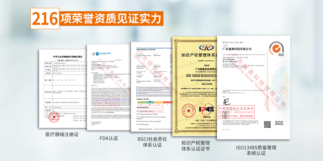 不斷研發(fā)創(chuàng)新,企業(yè)已經(jīng)獲得216項榮譽資質(zhì),并且通過了ISO 13485 、ISO 45001、 ISO 14001、GB/T 29490知識產(chǎn)權管理體系認證、BSCI社會責任體系認證;