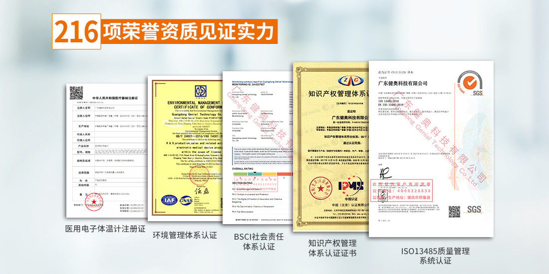 不斷研發創新,企業已經獲得216項榮譽資質,并且通過了ISO 13485 、ISO 45001、 ISO 14001、GB/T 29490知識產權管理體系認證、BSCI社會責任體系認證
