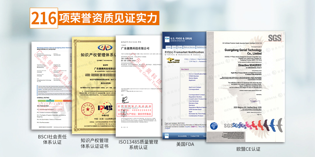 不斷研發創新,企業已經獲得216項榮譽資質,并且通過了ISO 13485 、ISO 45001、 ISO 14001、GB/T 29490知識產權管理體系認證、BSCI社會責任體系認證;